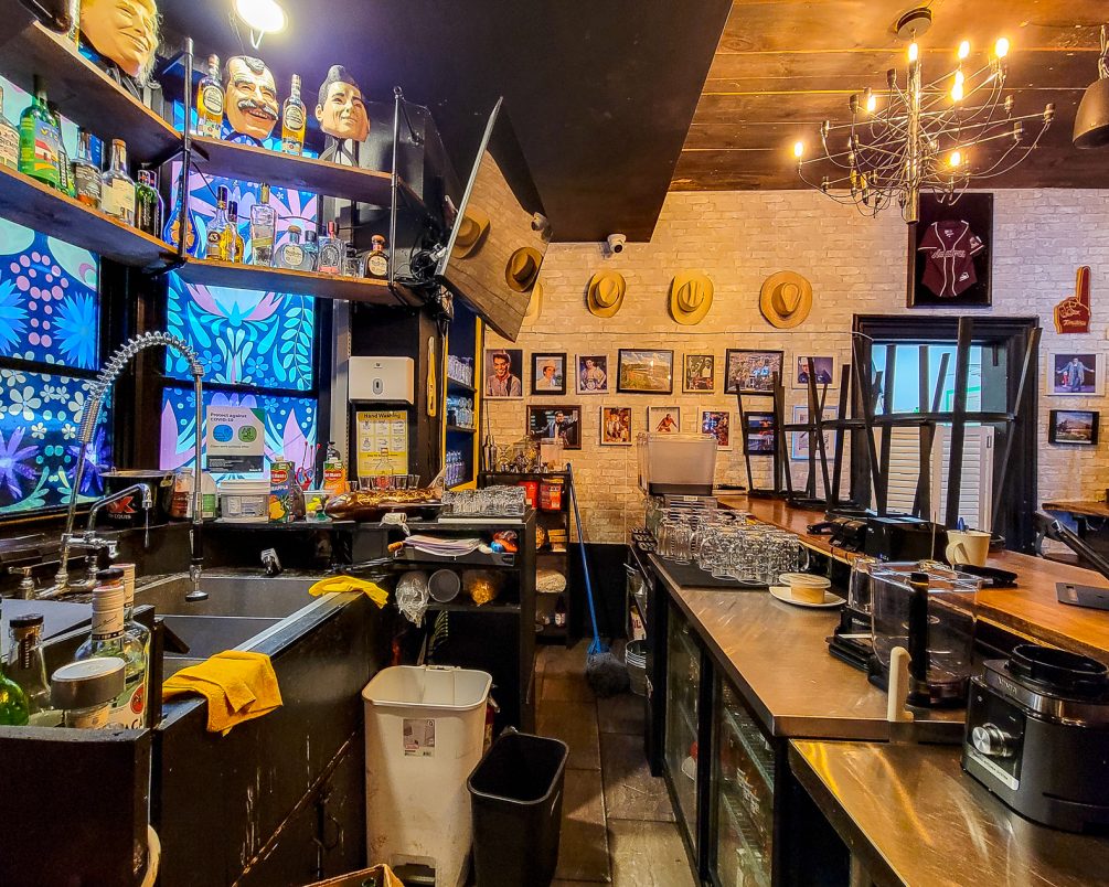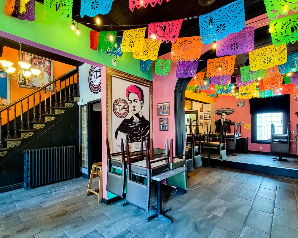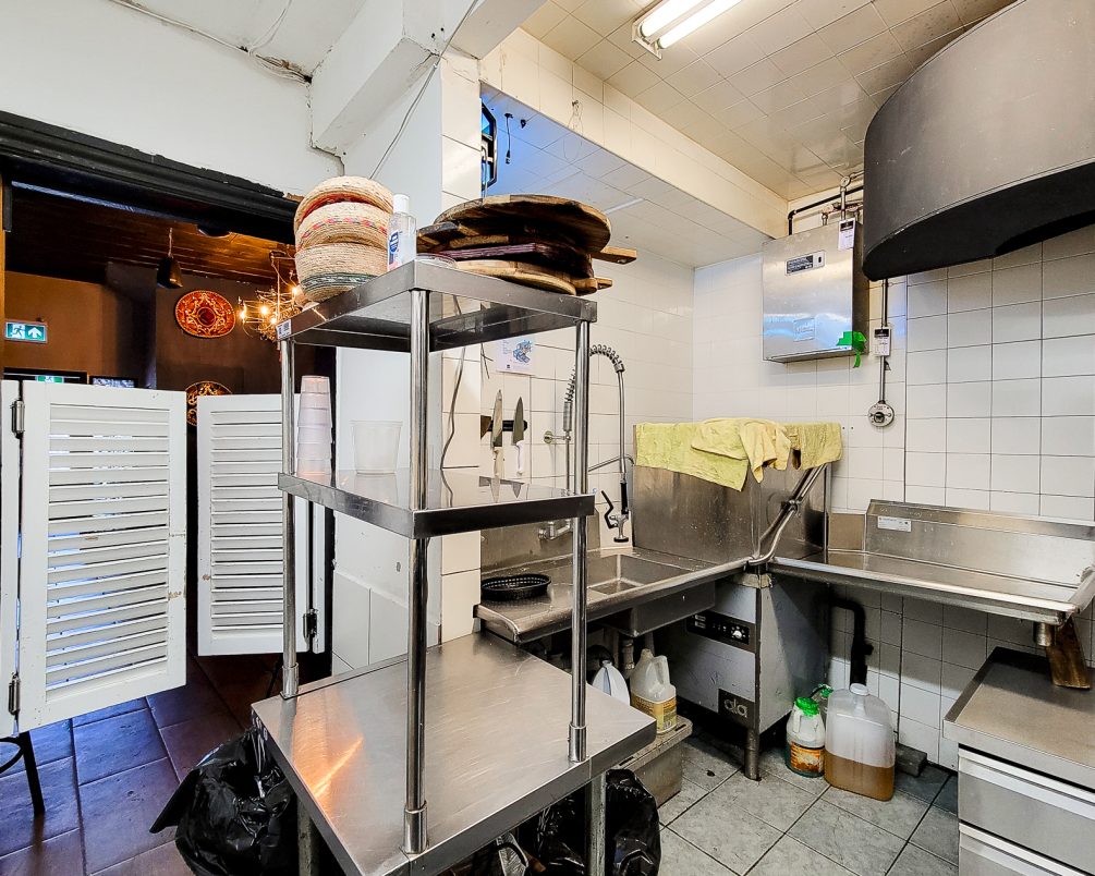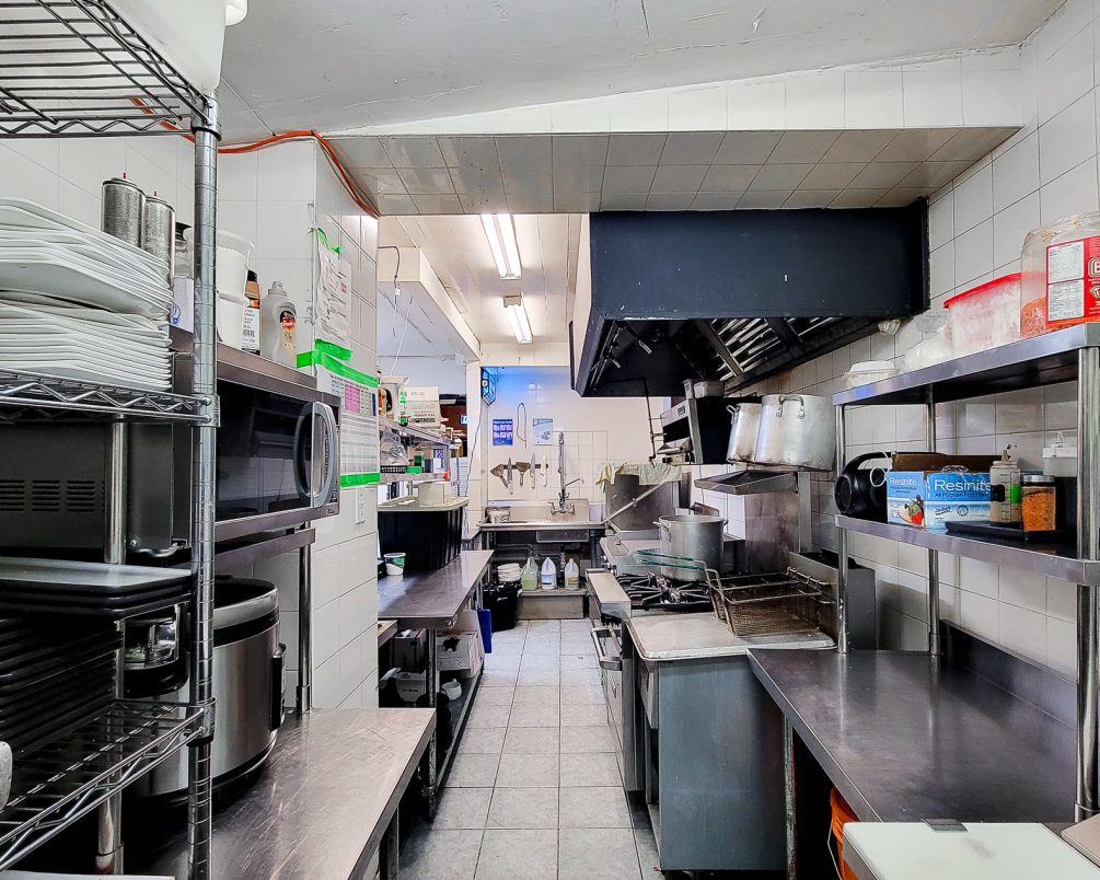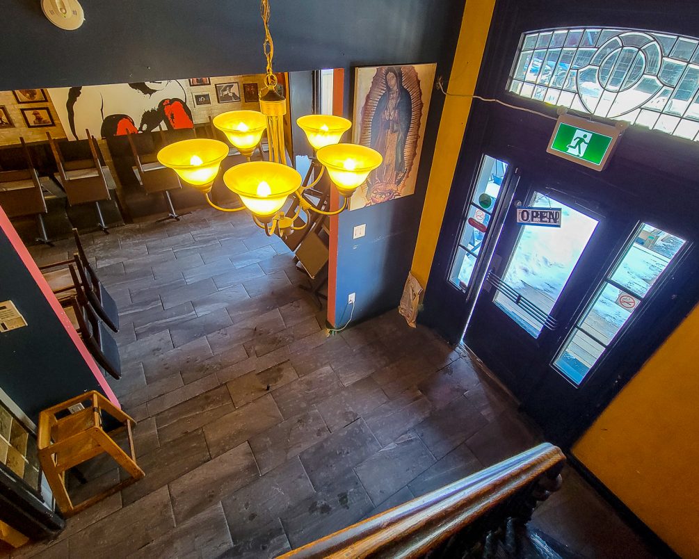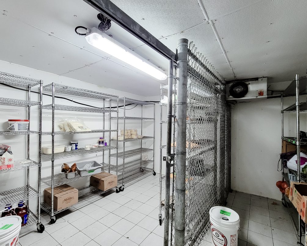 Inside, the space is built out for restaurant use with an operational commercial kitchen and licensed seating on multiple levels. The basement includes a large walk-in refrigerator and benefits from wide exterior stairs, making staffing, receiving, and moving product up and down far easier than most comparable restaurant spaces.