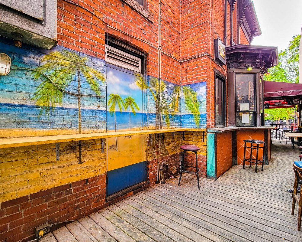 The property features a large, tiered licensed patio designed for high volume service, supported by both an indoor and outdoor bar setup. The patio is further enhanced by two dedicated outdoor washrooms, improving flow and guest experience during peak periods and event nights.