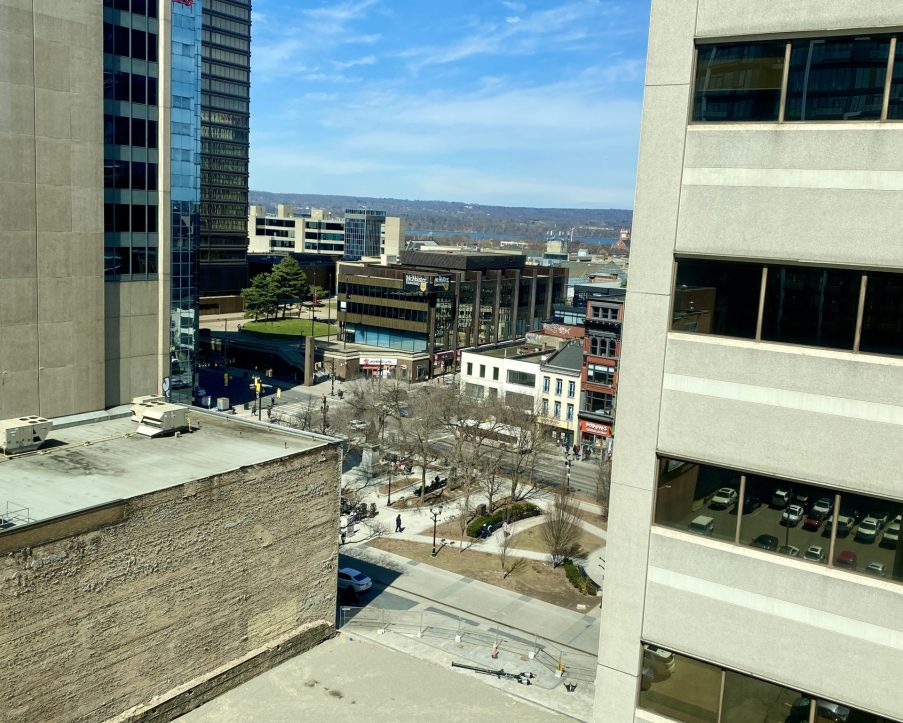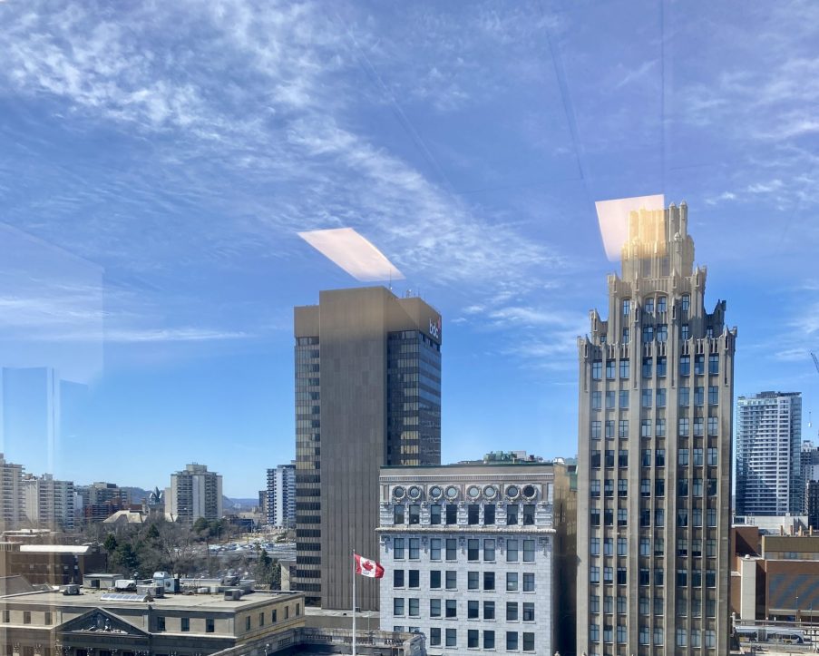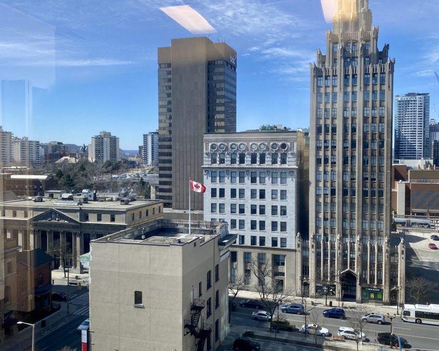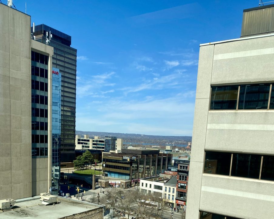 Office unit for lease in Hamilton, ON. This approximately 1,000 square foot corner office unit provides abundant natural light and a flexible layout well suited for professional services, consulting, or creative users. The unit benefits from large window lines and an efficient floor plan. The landlord can provide a competitive tenant improvement package and a full turnkey buildout to meet tenant requirements. The net lease structure includes all utilities and janitorial services in TMI, allowing for simplified operations. Parking is available at a ratio of 1 per 1,000 square feet on site, with additional spaces available at nearby lots at extra cost. The unit is located within a professionally managed office tower prominently positioned at the corner of Main Street East and Hughson Street South. The building rises ten storeys and features strong visibility in the heart of Hamilton’s downtown core. Tenants benefit from proximity to Gore Park, Jackson Square, City Hall, the courthouse, FirstOntario Concert Hall, and a variety of dining, retail, and cultural amenities. The area is well connected by public transit, with HSR routes at the doorstep and GO Transit within walking distance. This location provides an excellent combination of accessibility, amenities, and central business presence.