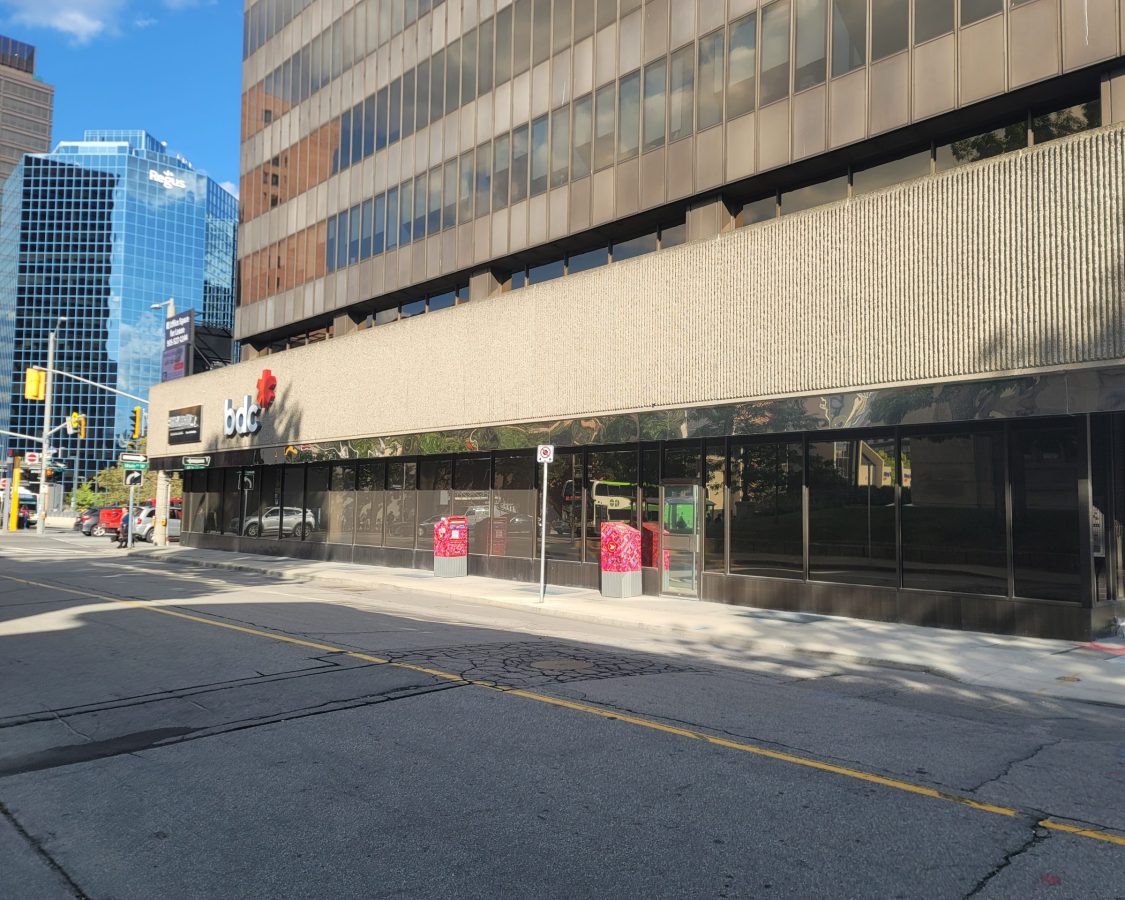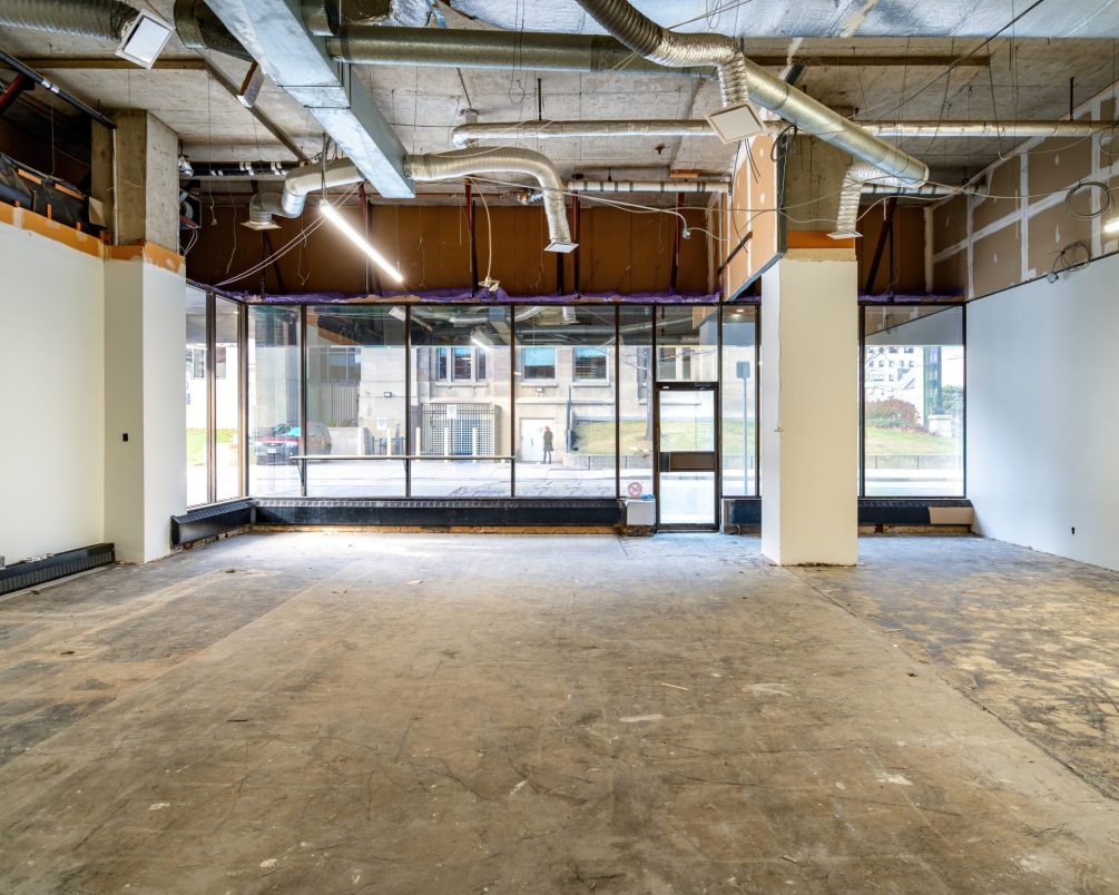 Retail unit for lease in Hamilton, ON. Presenting a prime ground-floor retail opportunity in the heart of Hamilton's vibrant downtown core. This versatile 1,927-square-foot unit boasts exceptional accessibility and prominent exposure along Main Street West. Featuring a functional commercial kitchen hood, the space is ideally suited for an eat-in or take-out restaurant, or a cozy café catering to building occupants and the surrounding community. The unit offers direct street access as well as entry through the building's main lobby, enhancing customer convenience. For tenants requiring a slightly smaller footprint, the space can be demised to 1,558 square feet. Building-mounted signage is available, providing excellent branding opportunities. Delivered in a raw condition, the unit is ready for your custom improvements, with attractive landlord incentive packages available to assist in the build-out process. Situated within a 22-story office tower, home to notable tenants such as BDC Bank and AJ Clarke & Associates, this location benefits from significant foot traffic and a built-in customer base. The building offers underground parking and additional parking adjacent to the property, with a ratio of one spot per 1,000 square feet leased, available at an additional cost. Tenants will appreciate the competitive lease rates and available leasehold improvement packages. The building's prime downtown location ensures easy access to public transit, banking facilities, shopping centers, City Hall, and courthouses—all within a one-block radius—making it an ideal spot for businesses aiming to serve both local professionals and visitors.