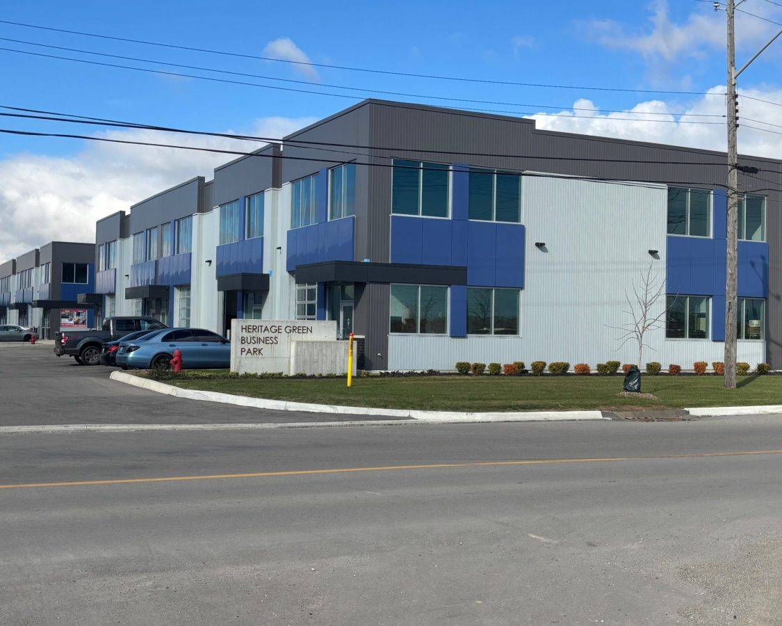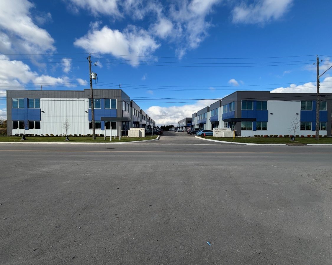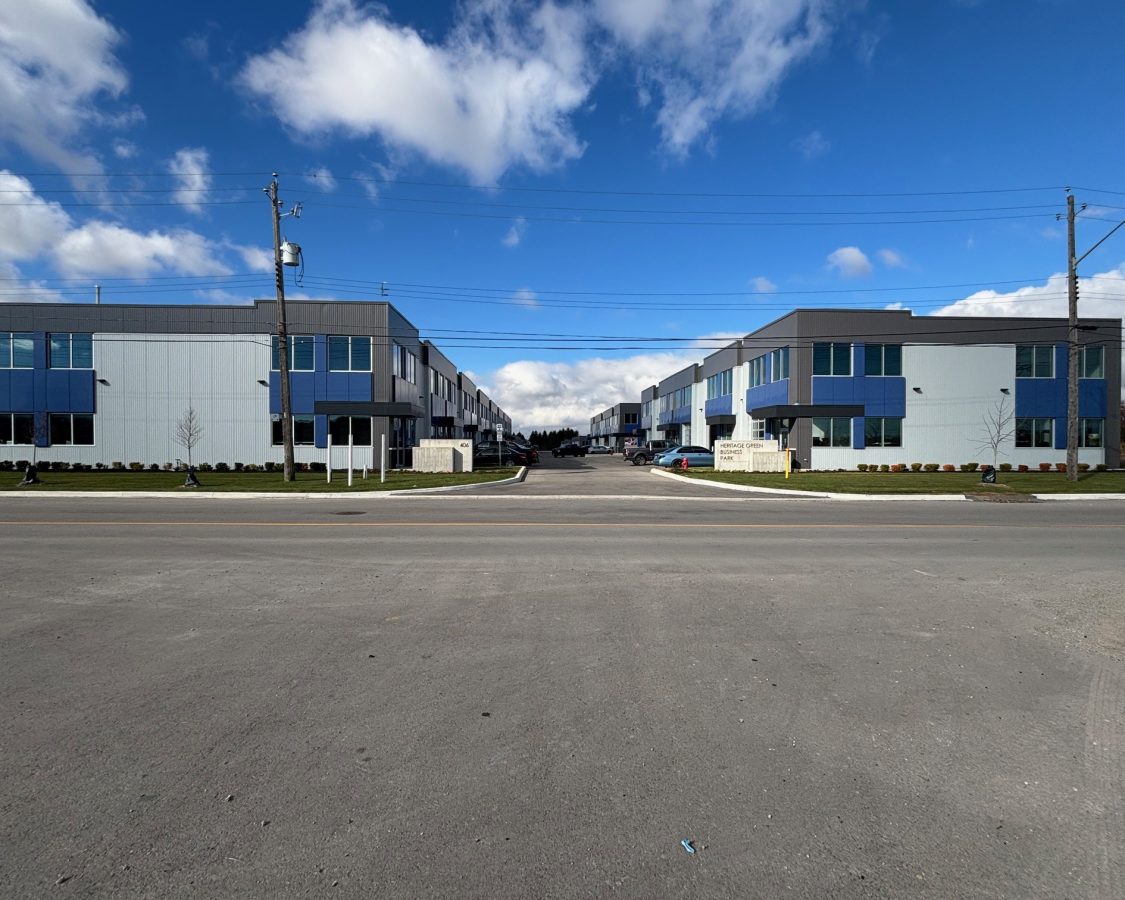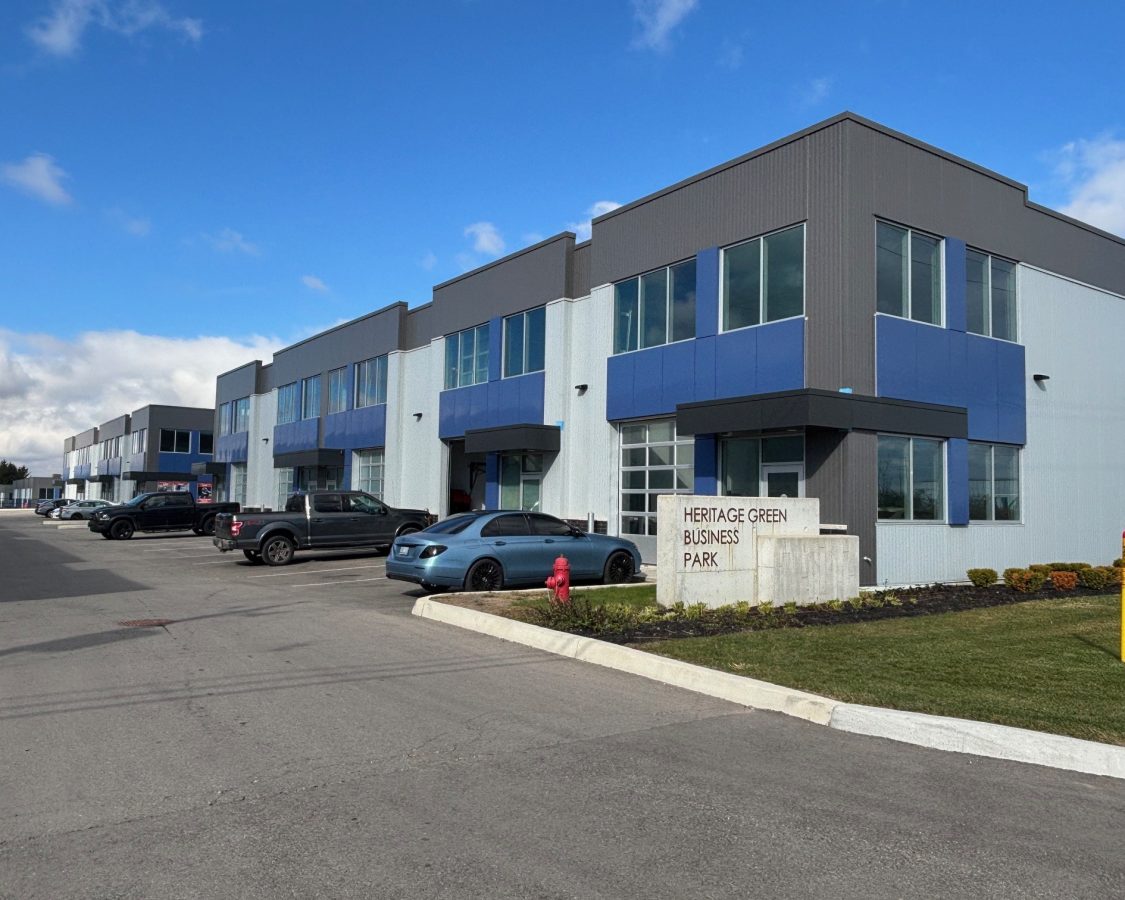 Industrial unit for sale in Hamilton. Heritage Green Business Park, Phase II, a newly constructed Industrial Condo Complex conveniently located in the Rymal Industrial Park district and near major roads and highways. M3 zoning permits most industrial/office uses. Unit features 22' - 6" clear ceiling heights, rear drive-in door, rough-in for A/C, up to 40% mezzanine area permitted. Base building condition ready for buildout, only one unit left. Immediate possession. || DOORS: Grade Level 10'2 x 11' ||