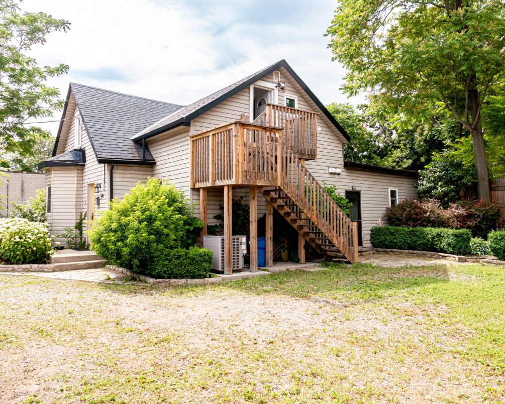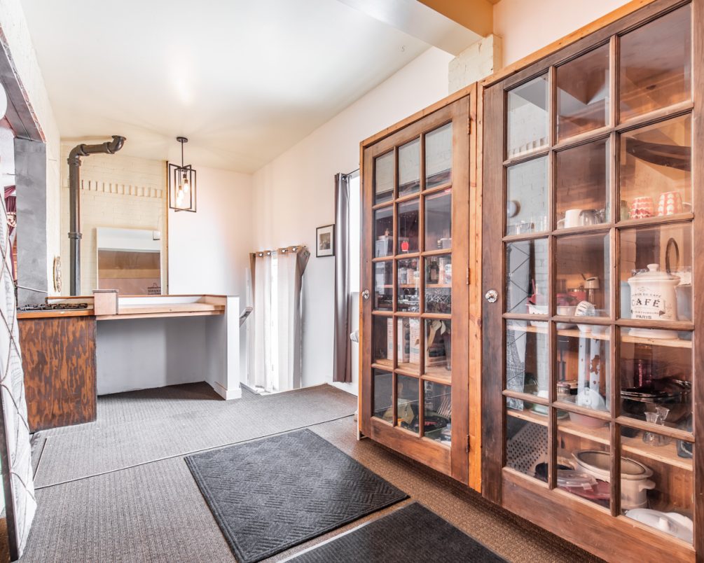 The mixed-use building offers significant upside with potential for a high-exposure retail storefront along Main Street, complete with new commercial windows and street access. At the rear, a large warehouse-style studio space with its own entrance can be separately leased. The central home is well-suited for residential rental or owner occupancy, offering privacy while maintaining income potential from the other structures.