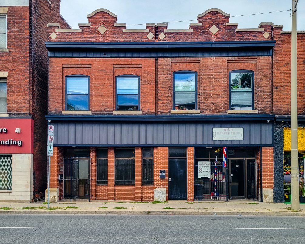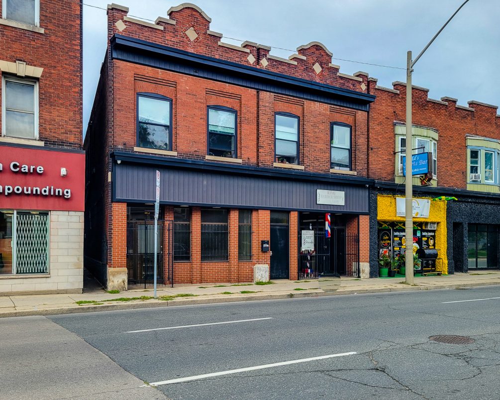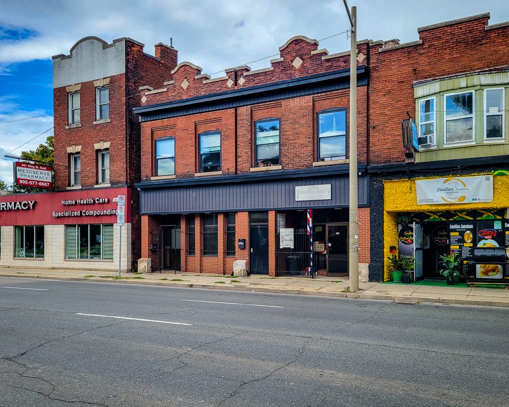 Mixed use office / retail / residential unit property for sale in Hamilton. Live, work, and invest at 593—595 King Street East. This mixed-use downtown property offers 3 units with 5 parking spaces along the future LRT corridor. The spacious 3,223 SF live-work unit with rooftop deck, full basement, and original bank vault will be vacant on closing, ideal for an owner-occupier or conversion back to commercial use. Additional income comes from a long-standing barbershop and a beautifully maintained 1-bedroom apartment with quality tenants. Unique character features include pressed-metal ceilings and turn-of-the-century details. Flexible zoning, ample power, and prime location make this a rare Hamilton opportunity. || TOTAL PARKING SPACES: 5 ||