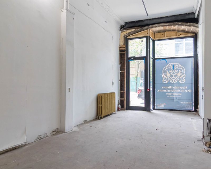 This bright and thoughtfully updated 1,303 SF ground-floor unit presents a standout opportunity for retail or hospitality operators looking to establish a presence in the heart of downtown Hamilton. The space features brand-new floor-to-ceiling storefront windows, offering excellent visibility and natural light, while coffered ceilings at the front provide an added touch of elegance and character. With a clean, open layout and flexible zoning, this unit is ideally suited for a boutique restaurant, cocktail bar, café, retail shop, or service-oriented business. A rare feature in the urban core, a side exit leads to a private alleyway/courtyard that can be transformed into a secluded patio — a hidden gem that extends the usability and charm of the space.